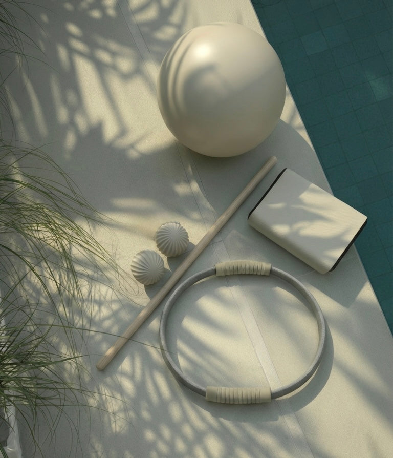 ✔ Pilates props (circle, ball, resistance tools, maple pole)